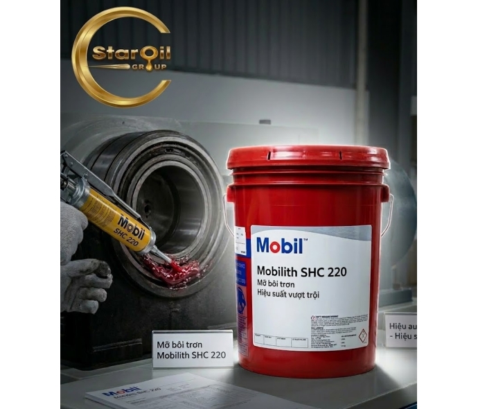 Mobilith SHC 220 là mỡ bôi trơn cao cấp, chịu nhiệt độ cao, chống oxy hóa, chống nước, bôi trơn hiệu quả, tương thích tốt, ứng dụng đa dạng.